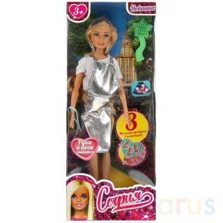 Будущая мама София одета в базовую белую футболку и блестящий серебристый сарафан. Образ куколки дополняют модные крупные серьги и элегантная сумочка. Одежду и аксессуары легко снять и надеть. С такой модной куклой девочке будет интересно и весело играть: благодаря тому, что руки и ноги куклы подвижны, им можно придать любое положение. У Софии длинные красивые волосы, которые хозяйка куклы сможет заплетать в разные причёски. Детально проработанный дизайн игрушки вдохновит девочку на новые игровые сюжеты.