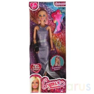 Модница София одета в роскошное вечернее платье из блестящей ткани, образ дополнен крупными серьгами и изящной сумочкой. С такой модной куклой девочке будет интересно и весело играть: благодаря тому, что руки и ноги куклы подвижны, им можно придать любое положение. У Софии длинные красивые волосы, которые хозяйка куклы сможет заплетать в разные причёски. Детально проработанный дизайн игрушки вдохновит девочку на новые игровые сюжеты.