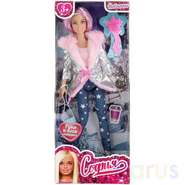 Очаровательная София одета в зимнюю куртку серебристого цвета с розовой меховой оторочкой, светло-розовую футболку и синие джинсы со звёздным принтом, на ногах - стильные зимние ботинки. Одежду легко снять и надеть. С такой модной куклой девочке будет интересно и весело играть: благодаря тому, что руки и ноги куклы подвижны, им можно придать любое положение. У Софии длинные красивые волосы розового цвета, которые хозяйка куклы сможет заплетать в разные причёски. Детально проработанный дизайн игрушки вдохновит девочку на множество увлекательных игровых сюжетов.