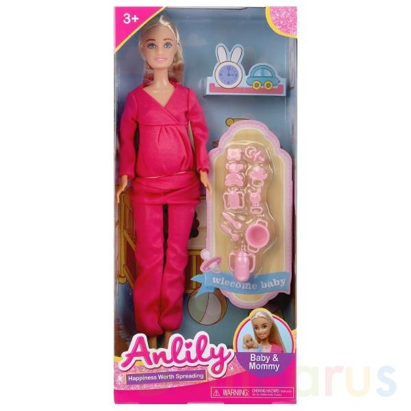 На куколке: удобный розовый костюм, состоящий из кофты и брюк, одежду легко снять и надеть. В животе у неё сидит малыш, его очень легко достать, и тогда у куколки появится ребёнок. Лицо куклы детально проработано. Длинные красивые волосы куклы легко расчёсывать и создавать стильные причёски. С куколкой можно пойти на прогулку или в гости и, конечно, весело играть, делая все девчачьи дела вместе.