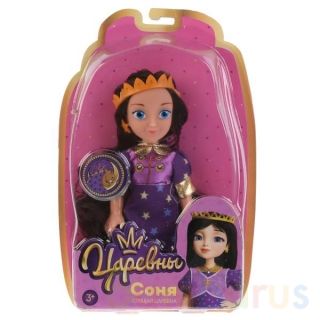 Соня одета в стильное платье и туфельки, в точности как героиня из мультфильма «Царевны». Образ царевны дополняет корона и серёжки. Одежду и аксессуары легко снять и надеть. Лицо куклы детально проработано. Длинные шелковистые волосы легко расчёсывать и создавать разнообразные причёски.