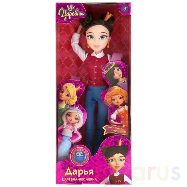 Дарья одета в стильный брючный костюм, в точности как героиня мультфильма. Образ царевны дополняют изящная корона и серьги. Одежду и аксессуары легко снять и надеть. Лицо куклы детально проработано. Волосы царевны уложены замысловатую причёску - при желании, их можно расплести и создать образ для куклы по собственному желанию. Благодаря тому, что руки и ноги куклы подвижны (на шарнирах), им можно придать любое положение.