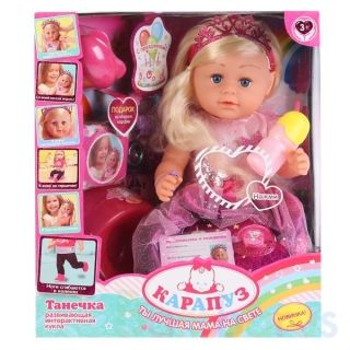 Эта милая кукла, с детально проработанным личиком, обязательно понравится вашей малышке. Танечка одета в нарядное розовое атласное платье, украшенное сеточкой и пайетками, и аппликациями в виде бабочек, на голове - блестящая диадема. Одежда легко надевается и снимается. У куклы длинные красивые волосы, которые можно расчёсывать и укладывать в разные причёски.
