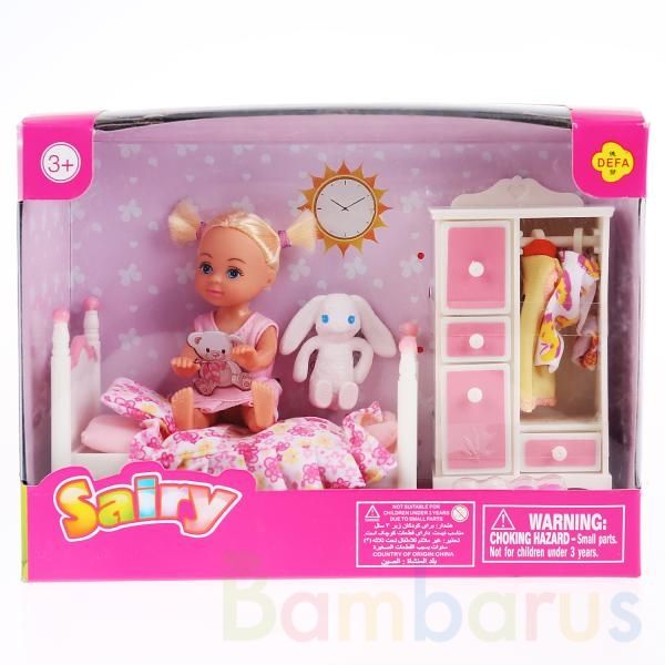 - Набор сразу 2 в 1: куколка-малышка + предметы мебелировки детской комнаты;