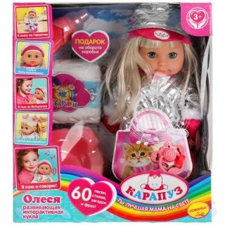 Развивающая интерактивная кукла «Олеся» ТМ «Карапуз» станет прекрасным подарком для вашей маленькой принцессы:- знает 60 песен, стихов, загадок и фраз- поёт 9 песен (фрагменты): «Барбарики» - «Разукрасим все планеты», «Бананамама», «Далеко от мамы», «Что такое доброта», «У друзей нет выходных», «Во…