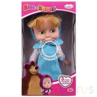 Кукла «Маша», персонаж мультсериала «Маша и Медведь» ТМ «Карапуз» - озвученная игрушка, которая поёт песенку "Про следы" и рассказывает 3 стиха-потешки ("Каша", Каравай", "Мишка косолапый"). Нажмите кнопку на животике.