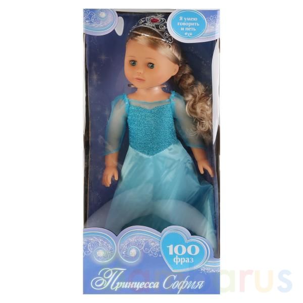 Интерактивная кукла «Принцесса София» ТМ «Карапуз» поёт песенку «Волшебный цветок» и произносит 100 фраз (нажмите кнопку на животике):