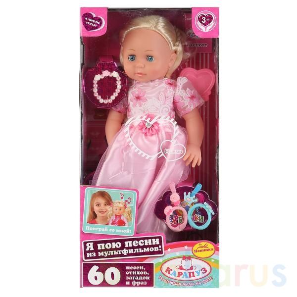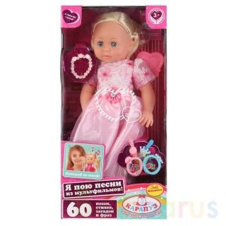 Интерактивная кукла «Ангелина» ТМ «Карапуз» станет прекрасным подарком для вашей маленькой принцессы: - поёт 9 песенок (6 песен из мультика «Барбарики»): «Разукрасим все планеты», «Бананамама», «Что такое доброта» и др.; «Волшебный цветок», «Мойдодыр», «Колыбельная медведицы»- рассказывает 5 стихов…
