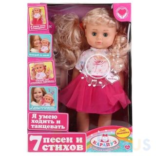 Развивающая интерактивная кукла «Варвара» ТМ «Карапуз» станет прекрасным подарком для вашей маленькой принцессы:- поёт 5 песен: «От улыбки», «Танец маленьких утят», «Аленький цветок», «Песня Принцессы» из м/ф «Бременские музыканты», «Если с другом вышел в путь»- знает 2 стихотворения: «О дружбе», «…