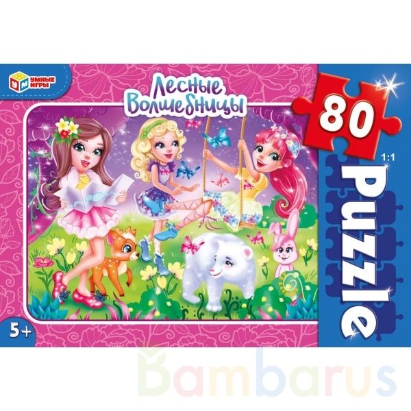 Классические пазлы в коробке «Лесные волшебницы» ТМ «Умные игры» непременно понравятся детям:- 80 деталей- красивое изображение с милыми персонажами- насыщенные цвета- все элементы хорошо и плотно соединяются друг с другомЗадача ребёнка – в правильной последовательности соединить элементы пазла дру…