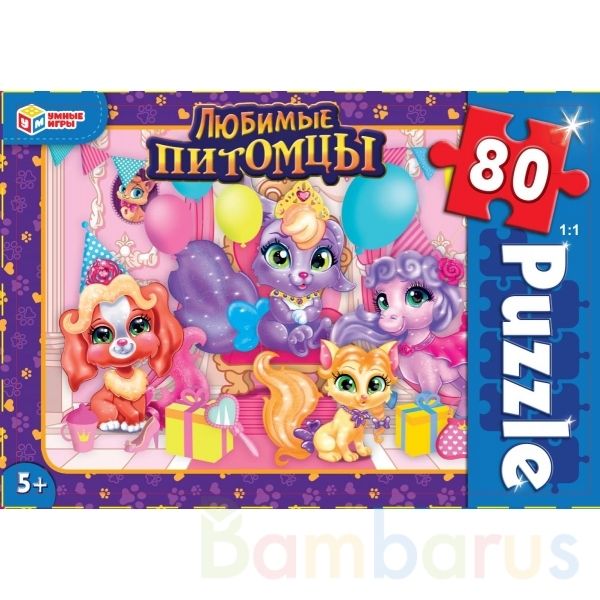 Классические пазлы в коробке «Любимые питомцы» ТМ «Умные игры» непременно понравятся детям:- 80 деталей- красивое изображение с милыми персонажами- насыщенные цвета- все элементы хорошо и плотно соединяются друг с другомЗадача ребёнка – в правильной последовательности соединить элементы пазла друг …
