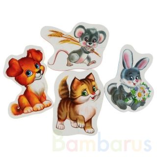 Задача ребёнка – правильно подобрать детали из набора, чтобы собрать картинки с изображением милых пушистых животных - кошечки, щенка, мышки и зайчика. Благодаря небольшому количеству деталей, малыш без труда сможет выполнить задание, с каждым разом делая это всё быстрее и быстрее.