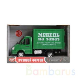 Игра с моделью машины в виде грузового фургона тренирует координацию движений, внимание, ловкость, знакомит ребёнка с видами транспорта.