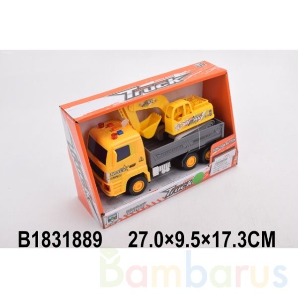- Оригинальная игрушка 2 в 1: с возможностью ставить на платформу сзади строительную технику или же снимать её и играть раздельно;
