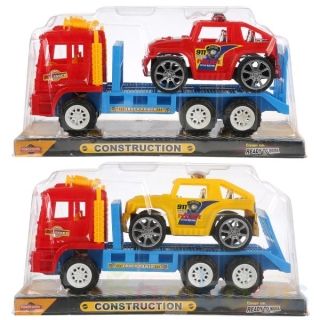 Целый набор машинок вместо одной! Такой подарок оценит любой мальчишка. У трейлера шесть колёс, поэтому он легко перевозит джип.