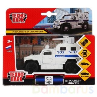 Металлический инерционный броневик «Волк» ТМ «Технопарк» непременно понравится юному автолюбителю.