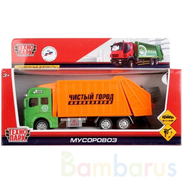 Металлическая машинка "МУСОРОВОЗ" является миниатюрной копией настоящего спецтранспорта, который дети наверняка видели на улицах города. Игрушка сделана из прочного материала и окрашена в яркие цвета. Кабина зелёного цвета, кузов выполнен в красочном оранжевом цвете и дополнен надписью «Чистый город». Имеются подвижные элементы: у мусоровоза поднимается и опускается задняя дверь грузового отсека. Длина машинки — 19 см. Мусоровоз оснащён инерционным механизмом: если его оттянуть назад и отпустить, он поедет самостоятельно. Игра с инерционными машинками хорошо тренирует мелкую моторику рук и координацию движений ребёнка. Рекомендуется детям с 3 лет.