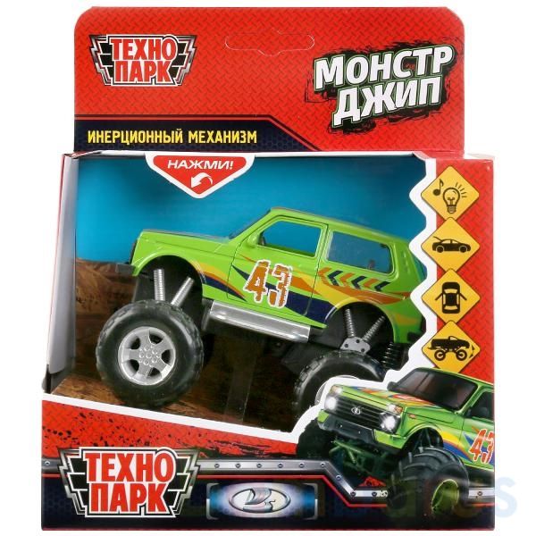 Коллекционная металлическая модель «Lada 4x4 Монстр Джип» ТМ «Технопарк» - прекрасный подарок для ребёнка:- звуковое сопровождение- световые эффекты- открываются передние двери- открывается багажник- подвеска- инерционный механизм (поставьте машинку на ровную поверхность, потяните назад, отпустите …