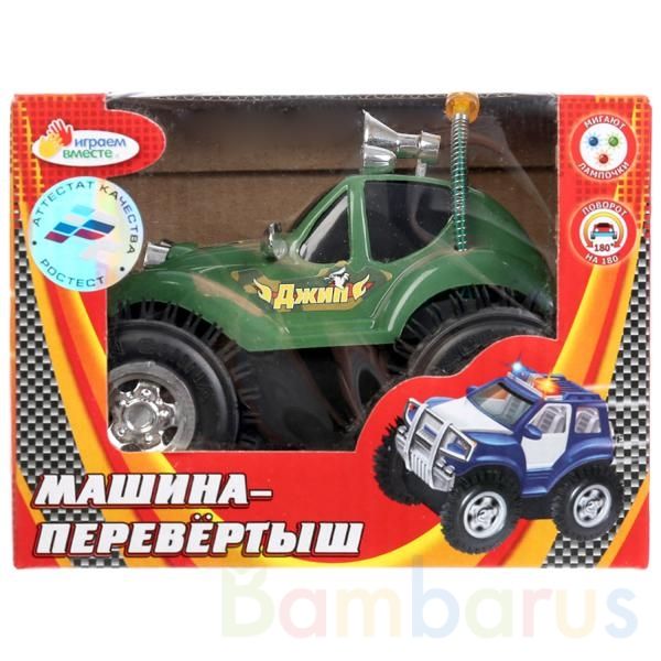 Машина-перевёртыш «Джип» ТМ «Играем вместе»:- световые эффекты (мигают лампочки)- поворот на 180 градусов- 4 больших колесаМашина-перевёртыш ТМ «Играем вместе» непременно понравится юному автолюбителю.Сюжетно-ролевые игры - важная часть развития ребёнка. Такие игры помогают ему освоить новые социал…