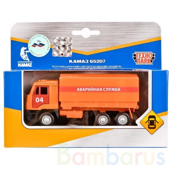 Металлическая модель «КамАЗ 65207. Аварийная служба» ТМ «Технопарк» - прекрасный подарок для ребёнка:- открываются двери- съёмный тент- опускается задний бортик кузова- инерционный механизм (поставьте машинку на ровную поверхность, потяните за корпус назад, отпустите и она начнёт быстро двигаться в…