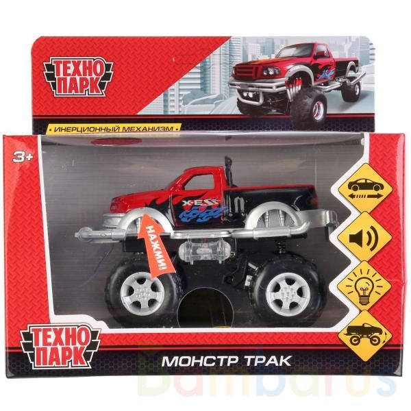 Металлическая модель «Монстр Трак» ТМ «Технопарк» станет прекрасным подарком для ребёнка:- световые эффекты- звуковое сопровождение- пружинящая подвеска- большие колёса- инерционный механизм (поставьте машинку на ровную поверхность, потяните за корпус назад, отпустите и она начнёт быстро двигаться …