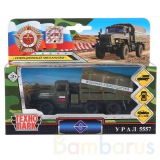 Металлическая модель «Урал 5557» ТМ «Технопарк» - прекрасный подарок для ребёнка:- открываются двери кабины- открывается задняя стенка кузова- съёмный тент- инерционный механизм (поставьте машинку на ровную поверхность, потяните за корпус назад, отпустите и она начнёт быстро двигаться вперёд)Металл…