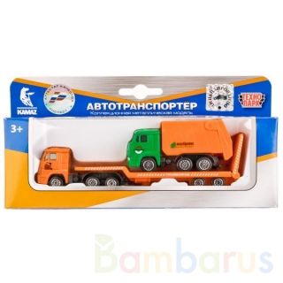 МАШИНА "ТЕХНОПАРК" МЕТАЛЛ. КАМАЗ. ТРАНСПОРТЕР 7,5СМ, С ДОП. МАШИНКОЙ В КОМПЛ. В РУСС. КОР. в кор.2*72шт Данный набор сделает сюжетно-ролевую игру "Спецслужба" увлекательней, ведь в нем имеется не только большой автотранспортер Камаз, но и вторая модель того или иного спецтранспорта. Малыш сможет перевозить транспорт на место происшествия, скатывая машинку по спуску транспортера. Игрушки выполнены из прочного металла. Игра с набором совершенствует моторику рук и координацию движений ребёнка. Придумывая увлекательные сюжеты для игры, дети стимулируют свою фантазию и воображение. Длина каждой модели 7,5 см. Рекомендовано детям от 3-х лет. Есть ассортимент.