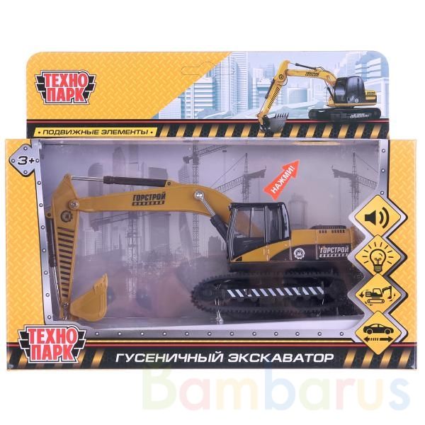 Металлическая модель «Гусеничный экскаватор» ТМ «Технопарк» - прекрасный подарок для ребёнка:- световые эффекты- звуковое сопровождение- подвижные элементы- инерционный механизм (поставьте машинку на ровную поверхность, потяните за корпус назад, отпустите и она начнёт быстро двигаться вперёд)Металл…
