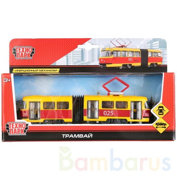 Трамвай ТМ «ТЕХНОПАРК» — это модель реального транспортного средства:- металлический корпус- масштаб 1:110- год кузова — 1962—1999 гг.- все двери открываются- инерционный механизмТакая модель станет отличным подарком и для ребёнка, и для взрослого коллекционера.Рекомендовано для детей от 3 лет.
