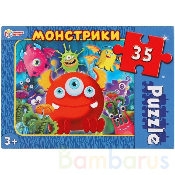 Макси-пазлы «Монстрики» ТМ «Умные игры» - отличная развивающая игра для маленьких любознаек:- 35 деталей- крупные элементы- красочный дизайн- все элементы хорошо и плотно соединяются друг с другомЗадача ребёнка – в правильной последовательности соединить элементы пазла и получить в результате красо…