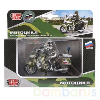 Коллекционная металлическая модель военного мотоцикла ТМ «Технопарк» понравится маленькому любителю военной техники: