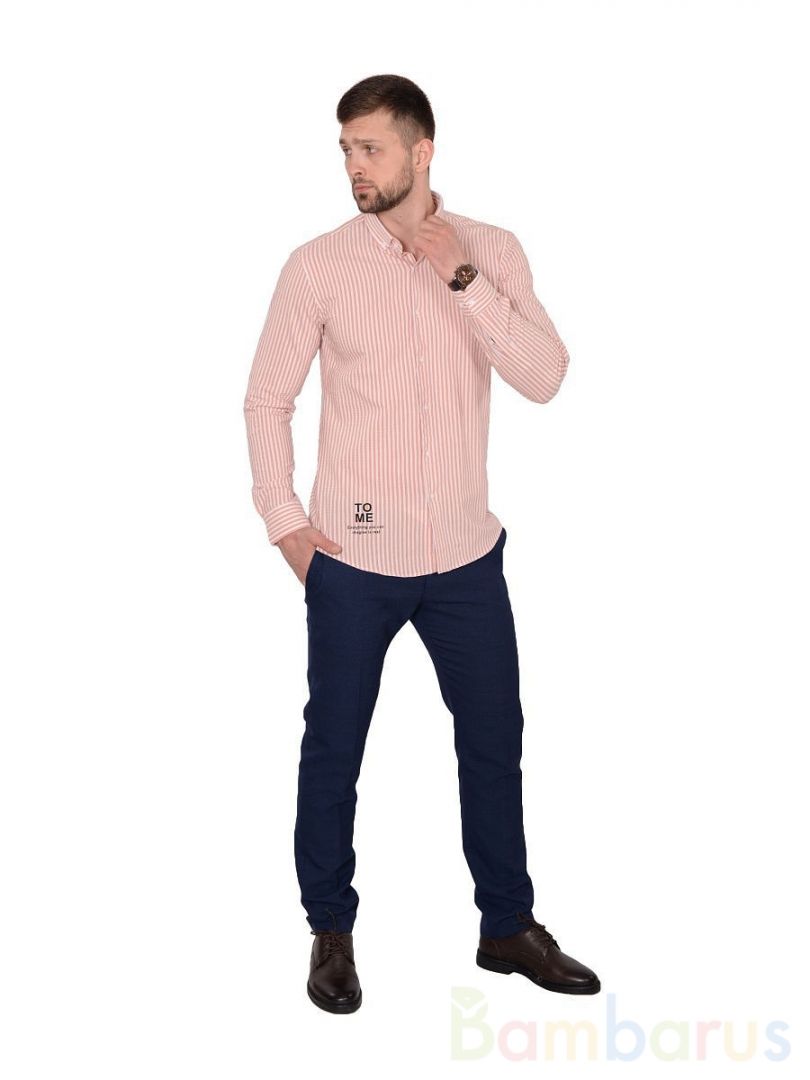 Бело-лососевая прямая мужская рубашка Damon