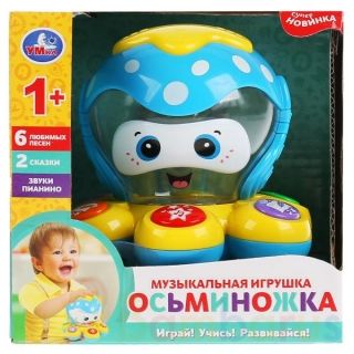 Вашего малыша приведёт в восторг эта яркая игрушка в виде милого, улыбающегося осьминога с большими круглыми музыкальными кнопочками на ножках. Ребёнок с удовольствием будет нажимать на эти кнопки и слушать любимые сказки, весёлые песенки и звуки пианино.