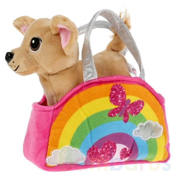 Шёрстка собачки сделана из мягкого материала, поэтому игрушку очень приятно обнимать и гладить. У питомца очаровательная мордочка, которая вызовет у ребёнка самые трепетные чувства. Радужная сумочка с милыми сверкающими аппликациями и двумя серебряными ручками из блестящего материала придётся по вкусу маленьким модницам. Собачку можно сажать в сумочку и брать с собой на прогулку или в гости.