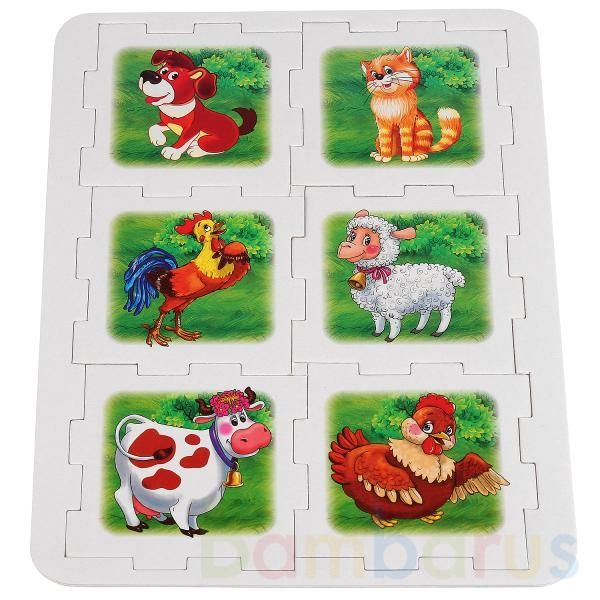 Увлекательный развивающий кубик-пазл «Домашние животные» ТМ «Умка»: - 6 деталей- 12 стихотворений В. СтепановаИгрушка в игровой форме познакомит малыша с разными домашними животными.Мягкий пазл состоит из 6 пластин, из которых собирается кубик. Также из деталей пазла можно собрать небольшой коврик…
