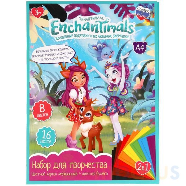 Набор для творчества 2 в 1 «Enchantimals» ТМ «УМка» - отличный вариант для воплощения творческих идей:- 8 + 8 листов А4- 8 цветов- мелованный картон- все листы лежат в папке- картонная линейка в комплекте- любимые герои- подходит для детского творчества, уроков труда и технологииЭтот набор из мелов…