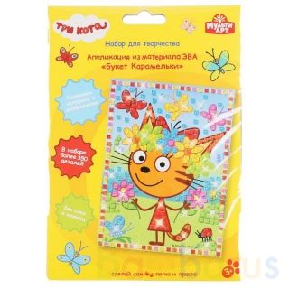 Набор для творчества «Три кота. Букет Карамельки» ТМ «МультиАрт» - отличный подарок для ребёнка, который будет способствовать развитию его творческих способностей.Комплектация и особенности:- картонная основа для аппликации- более 350 деталей- без клея и ножницС помощью красочной основы и мягкой мо…