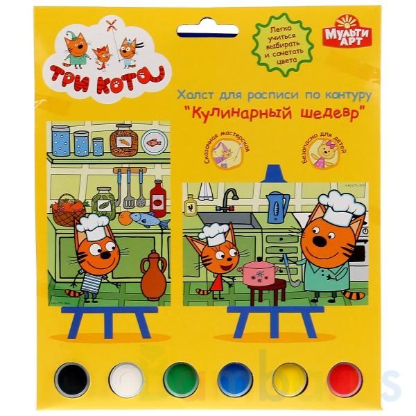Развивающий творческий набор для росписи по контурному рисунку с номерами «Три кота. Кулинарный шедевр» ТМ «МультиАрт» - это сразу 3 функции-преимущества в 1-м наборе: