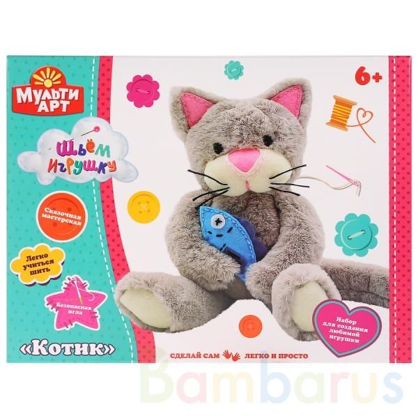 Набор для детского творчества «Котик» ТМ «МультиАрт» – отличный подарок для вашего малыша, который будет способствовать развитию творческих способностей. В комплект для создания любимой игрушки входят: - безопасная игла- нитки- материал (плюш и др.)- пуговицыС набором сказочной мастерской «МультиАр…