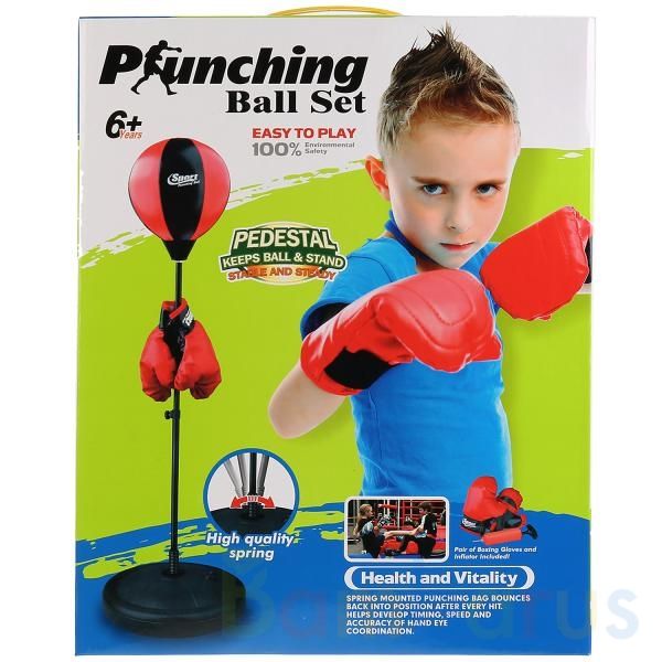 Напольный набор для бокса:- груша надувная (высота стойки регулируется)- перчатки- насосТеперь тренироваться можно, не выходя из дома. Игра с таким набором развивает ловкость и скорость реакции, помогает оттачивать навыки самозащиты.Высота стойки: 69-102 см.