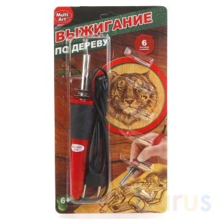 Набор MultiArt создан для детского творчества и выжигания изображения или орнамента на любой деревянной поверхности. В него входит специальный инструмент, который работает от сети. Мощность прибора - 40W. К нему прилагается 6 разных насадок, при помощи которых создаётся рисунок. Набор можно использовать на занятиях дома, на учёбе и в творческих мастерских. При соблюдении правил эксплуатации он очень удобен в использовании и безопасен для детей. Рекомендуется для детей от 6 лет.
