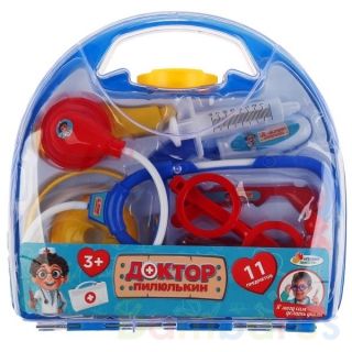 С этим набором ребёнок сможет придумать множество увлекательных сюжетов, согласно которым он будет выступать в роли доктора, а пациентами станут любимые игрушки. Играя с набором, малыш станет увереннее и будет расширять свой кругозор, знакомясь в процессе игры с различными медицинскими инструментами и их назначением. Для хранения и переноски предметов предусмотрен удобный пластиковый чемодан с ручкой.