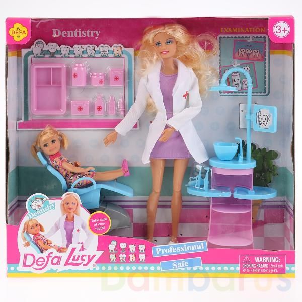 Вместе с этими стильными куколками, доктором и его маленьким пациентом, девочке будет интересно и весело играть в доктора. У куклы-доктора длинные красивые волосы, которые хозяйка куколки сможет заплетать в косички и расплетать.