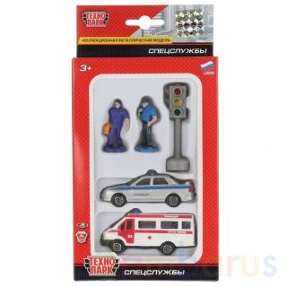 - 2 металлические модели машинок: полицейская и скорая