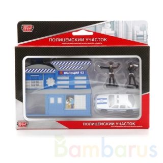 НАБОР "ТЕХНОПАРК" ПОЛИЦЕЙСКАЯ ЧАСТЬ С МЕТАЛЛ. МАШИНОЙ 7,5СМ И 2-МЯ ФИГУРКАМИ В КОР. в кор.2*24шт "Полицейский участок" замечательный игровой набор, который способен заинтересовать практически любого мальчика. В комплекте идут сам полицейский участок, металлический автомобиль, а также 2 фигурки полицейских, один из которых является регулировщиком, а второй останавливает нарушителей за превышение скорости. Игра с набором совершенствует моторику рук и координацию движений ребёнка. Придумывая увлекательные сюжеты для игры, дети стимулируют свою фантазию и воображение. Размер машинок 7,5 см. Рекомендовано детям от 3-х лет.