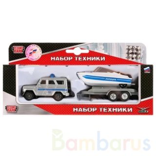 Набор металлических моделей «Полицейская машина с прицепом» ТМ «Технопарк» - прекрасный подарок для ребёнка.