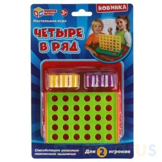 Настольная игра «Четыре в ряд» ТМ «Умные игры» - весёлое развлечение для детей и взрослых:- для 2-х игроков- яркие цветаВ комплекте:- игровое поле на подставке- фишки 2-х цветовЦель этой логической игры собрать 4 фишки своего цвета в ряд по горизонтали, вертикали или диагонали, что будет не так-то …