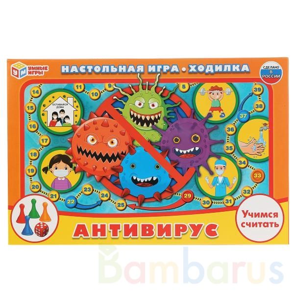Настольная игра-ходилка «Антивирус» ТМ «Умные игры» – это увлекательная игра, которая познакомит ребёнка с цифрами и профилактическими мероприятиями, направленными на защиту организма от вирусов и вредных бактерий.