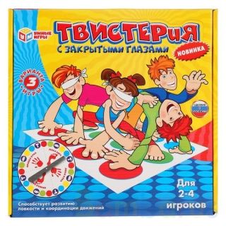 Игра для компании «Твистерия с закрытыми глазами» ТМ «Умка»В комплекте:- игровое поле- колесо рулетки для выбора действияКак играть:1. Расстелите игровое поле и соберите рулетку.2. Игроки становятся на поле на 2 ноги, максимально далеко друг от друга. При чётном количестве игроков можно разбиться н…