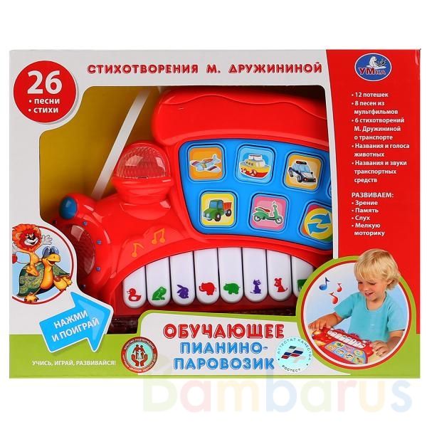 Обучающее пианино-паровозик. Стихи М.Дружининой, учим животных, транспорт, 20 песен. ТМ "УМКА" на бат. свет+звук в русс. кор. в кор.2*18шт Обучающее пианино со стихами Марины Дружининой о транспорте, любимыми песнями и голосами животных ТМ «УМка» познакомит ребёнка с окружающим миром. Оно изгото…